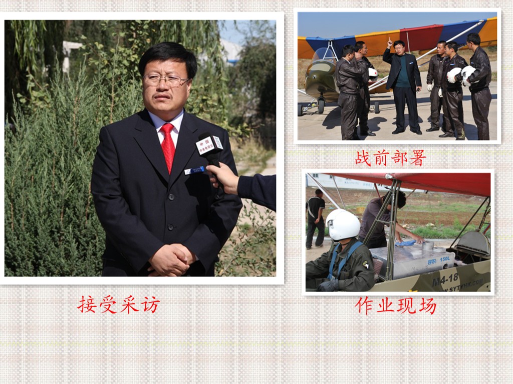 ,而是毅然決然的走上里一條充滿艱辛的打拼之路,在別人笑之為天方夜譚的情況下,1999年四處投親靠友籌集資金從北京航空航天大學(xué)購(gòu)進(jìn)了一架蜜蜂4超輕型飛機(jī),與此同時(shí)它成就了內(nèi)蒙古自治區(qū)第一個(gè)私人擁有飛機(jī)的人,飛機(jī)有了,他東奔西走,開(kāi)始學(xué)習(xí)、探索、研究制作超輕飛機(jī)飛機(jī)播種和飛機(jī)滅蟲設(shè)備,經(jīng)過(guò)4年的反復(fù)試驗(yàn),終于在2003年設(shè)備試驗(yàn)成功,但沒(méi)有相關(guān)手續(xù)私人飛機(jī)不允許私自飛行,于是成立航空公司的想法在心中勾畫,他開(kāi)始了中國(guó)第一家超輕型飛機(jī)通用航空公司的籌建工作,一己之力不可成江河,于是他伙同一直支持他的妻子四處請(qǐng)專家、找能人,終于在2006年經(jīng)過(guò)三年努力國(guó)家民航華北地區(qū)管理局為其頒發(fā)了通用航空公司籌建許可證,于是他又四處籌措資金,投入到籌建工作之中,2008年六月經(jīng)民航華北地區(qū)管理局驗(yàn)收合格并頒發(fā)通用航空運(yùn)營(yíng)許可,與此同時(shí)他的飛機(jī)播種、飛防滅蟲兩項(xiàng)實(shí)用新型專利獲得通過(guò),國(guó)家知識(shí)產(chǎn)權(quán)局頒發(fā)了實(shí)用新型知識(shí)產(chǎn)權(quán)證書。(鏡頭七)設(shè)備特寫(包括專利證書)邱志剛一個(gè)不屈不撓的東北漢子,在平凡的人生道路上創(chuàng)造了不平凡的業(yè)績(jī),創(chuàng)造了不平凡的人生價(jià)值。創(chuàng)造了人生的豪邁與神奇。