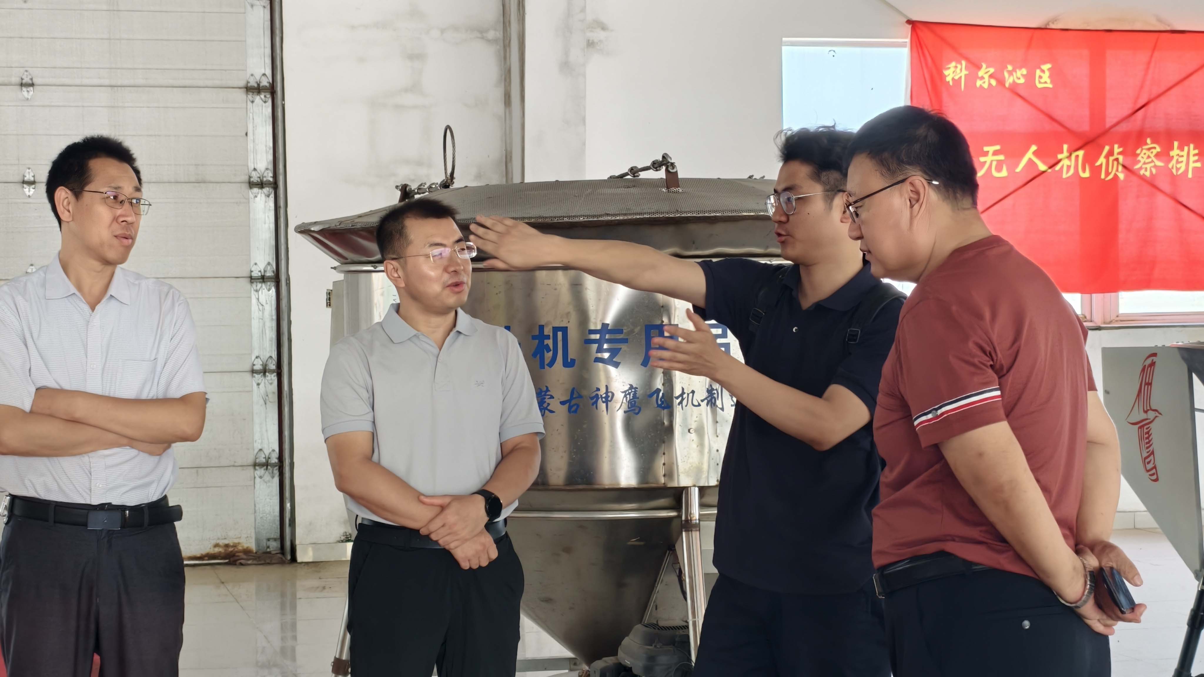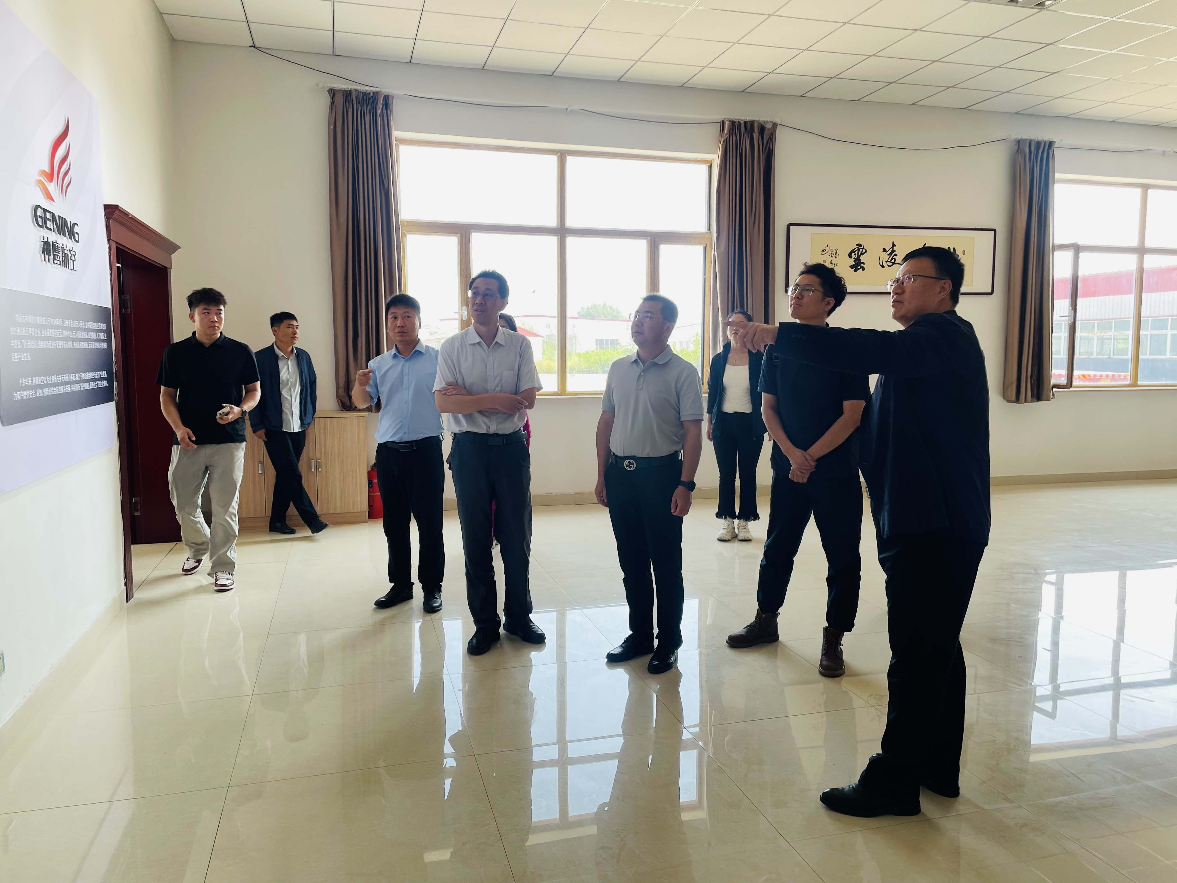 9月4日上午,通遼市科爾沁區(qū)科技局局長張海楠帶隊,內(nèi)蒙古工業(yè)大學(xué)輕工與紡織學(xué)院院長麻文效、化工學(xué)院副院長冀國俊、智能裝備研究院負(fù)責(zé)人高云峰、新能源學(xué)院教師嘎啦泰等一行蒞臨內(nèi)蒙古神鷹航空集團(tuán)有限公司,圍繞低空經(jīng)濟(jì)發(fā)展與新能源技術(shù)應(yīng)用開展專題調(diào)研。集團(tuán)董事長邱志剛、總經(jīng)理孫學(xué)慧共同陪同調(diào)研并參與交流,邱志剛在現(xiàn)場作了詳細(xì)講解。